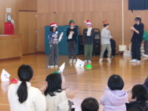 「猛獣がり」ならぬ「南っ子がり」では、条件に合わせた人数で集まり、トークテーマに沿って会話を楽しみました。「クリスマスプレゼントにほしいもの」などの話題で話に花を咲かせていた南っ子。「こっち空いてるよ!」などと輪の中に誘ったり、いろいろな学年の友達と話をしたりと、あたたかい雰囲気が広がりました。