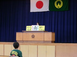 ③については、「南っ子、一人一人が大切な存在」「南っ子のみんながよりよく過ごすために、自分にできることを考えよう」というお話がありました。