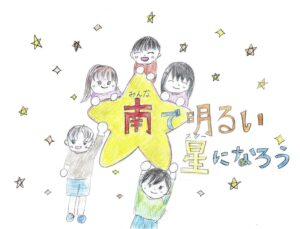児童会のテーマ「南(みんな)で 明るい星(スター)になろう」です。